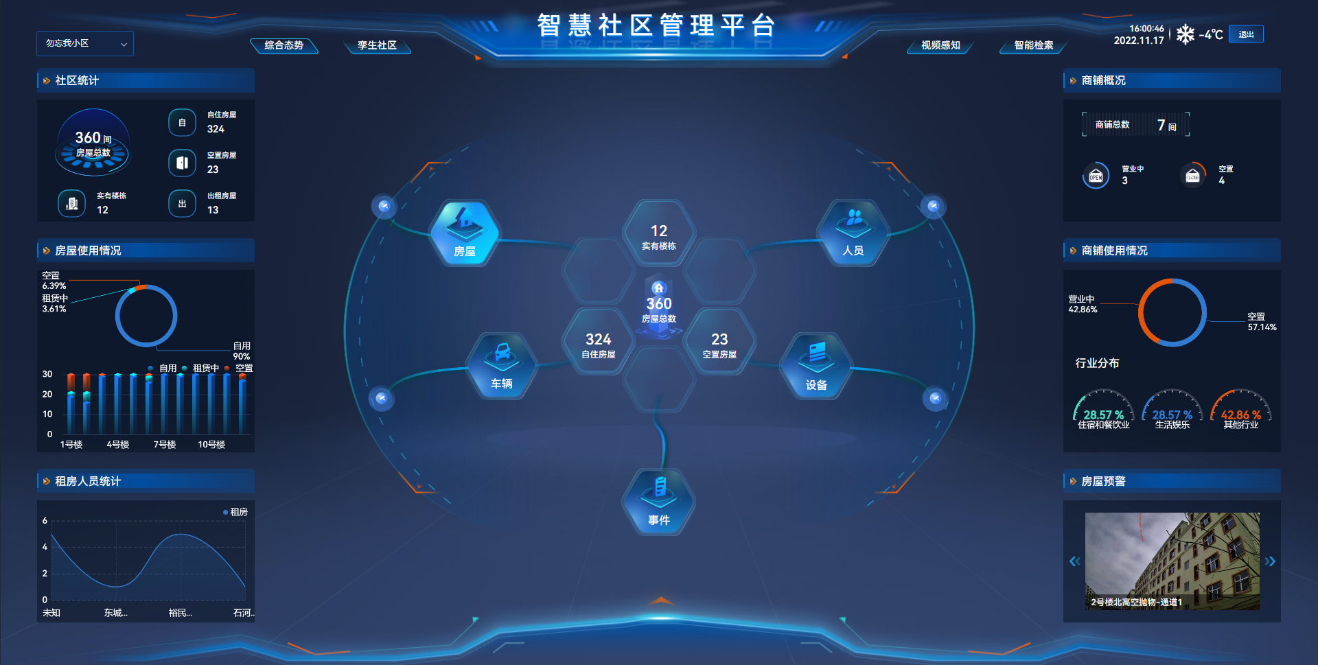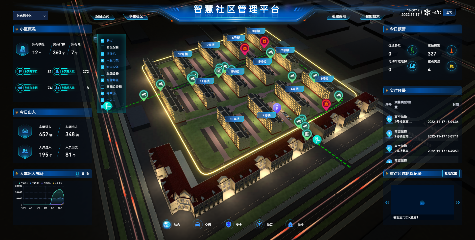 基于信息化、智能化社会管理与服务,充分借助物联网、传感器、大数据等技术,把物业服务、安防管理、企业组织运营与业务管理等系统集成在一起,并通过网络链接将物业公司、公安部门、业主进行有效链接,为社区居民打造舒适、安全、便利的现代化、智慧化的生活环境。