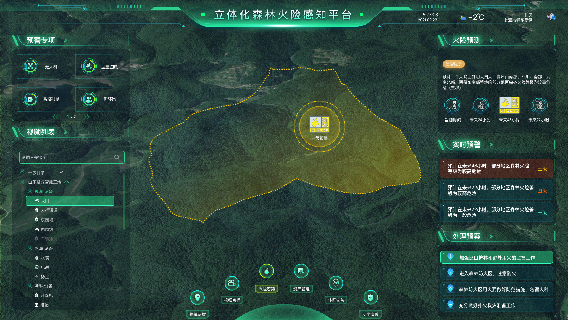 支持灵活的模块化功能设计,支持按客户所需进行定制开发,具备森林防火可视看板、烟火识别视频预览、视频录像回放下载、烟火事件报警弹窗、烟火识别云台控制、GIS图上监控定位、在线地图标绘测距、实时数据预览弹窗、林火报警事件抓图、报警信息智能推送(SMS、邮件)、报警数据智能统计、报警主机实时管理、IoT物联传感器管理、系统应急日志管理等完善功能。