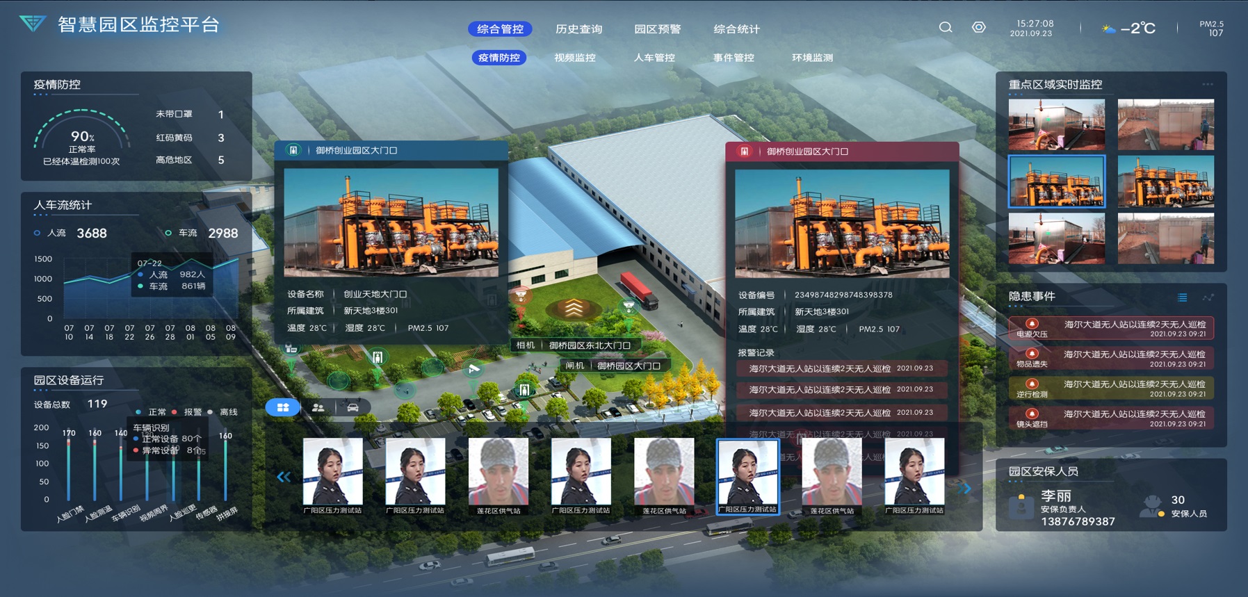 通过生物识别、人员及车辆识别、人群智能分析,驱动安防应用前端化、云端化、平台化、行业化,利用物联网技术,把感知设施和智能设备嵌入到各种环境监控对象中,通过服务器、云平台、物联网进行有效整合,实现园区不同环境业务系统整合,服务环境管理、决策智能的精细化、动态化。