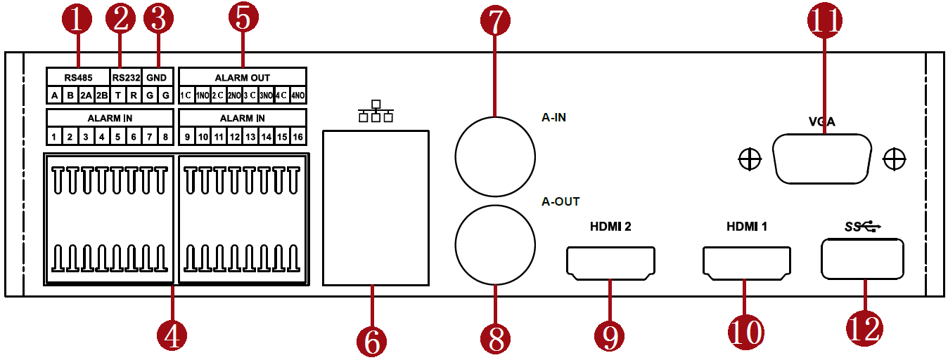 外部I/O | 报警输入 | 16路报警输入 |