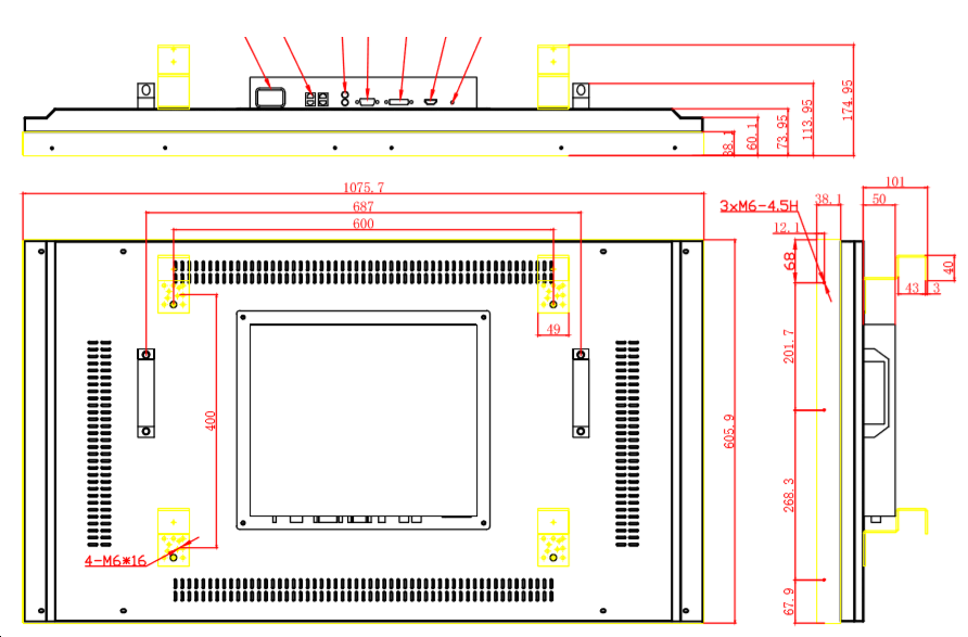 HDMI/DVI/VGA/AV/RS232/电源接口 |