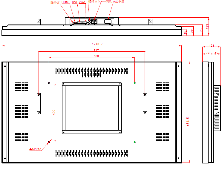 HDMI/DVI/VGA/AV/RS232/ 电源接口 |