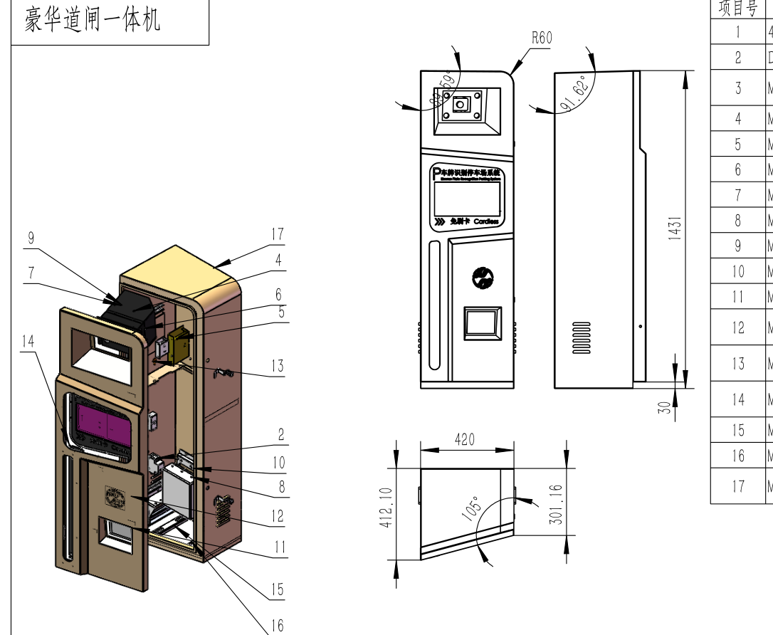 1)、外型尺寸机身高、宽、厚:1420mm*430mm*420mm
