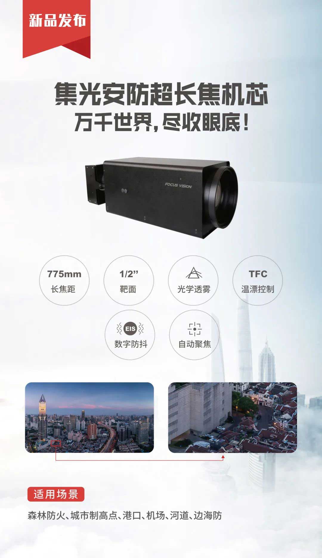 顺应安防监控市场数字化、网络化、高清化、智能化的发展趋势,星空官网安防重磅推出大倍率长焦机芯,集成37倍光学变焦超高清可见光镜头,搭配SONY最新传感器,为森林防火、城市制高点、港口、机场、河道、边防、海防防控提供视频图像整体解决方案。